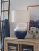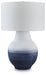 Recalling the texture of antique pottery, this table lamp incorporates a casual-meets-coastal feel into your decor. Its softly shaped silhouette is decorated in an ombre-style white and navy blue finish. Place it next to your sofa or bedside for a charming take on everyday illumination.