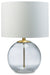 Featuring a round, clear glass base, this table lamp has a clean sculptural appeal that's easy to implement into many decor styles. Its sheer simplicity exudes a clean, fresh aesthetic, adding low-key glamour to your bedroom or living room.