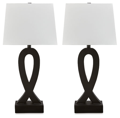 Turn on the brilliance and modern flair of this table lamp set. The angular silhouette and intriguing base in distressed black are the definition o...