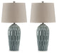 | Details | Made of ceramic with modified drum hardback fabric shade, Pale teal glaze, 3-way switch, 1 E26 socket, type A bulb (not included); 150 watts max or LED equivalent; UL Listed, Assembly required | |
