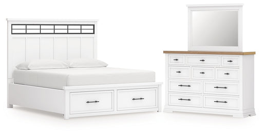Ashbryn King Panel Storage Bed with Mirrored Dresser