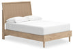 Clean-lined and contemporary—but far from stark—this bedroom package is a fresh style awakening. Pairing a light finish with replicated oak grain and textured beige cane details, its mixed materials bring a naturally versatile vibe to your bedroom. Sleek, simple hardware plays perfectly with the modern aesthetic.