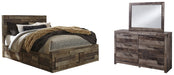 Derekson Queen Panel Bed with 4 Storage Drawers with Mirrored Dresser