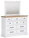 | Details | B844B2: Includes panel headboard, storage footboard, rails and roll slats, Footboard made with hardwood solids, MDF substrates and butcher block oak veneer, Headboard and rails made with hardwood solids and MDF substrates, White finish, Headboard with inset black metal barn sash, 2 drawers in footboard with fully finished interior, dovetail construction and ball-bearing side glides, Pulls with matte black finish, Bed does not require a foundation/box spring, Mattress available, sold separately, Assembly required, B844B1: Includes dresser and mirror, Made with hardwood solids, MDF substrates and butcher block oak veneer, Dresser with 2-tone finish (white finish; butcher block oak veneer with natural finish), Pulls with matte black finish, 10 spacious drawers with fully finished interiors (top drawers felt lined), dovetail construction and ball-bearing side glides , Drawers with inset picture fronts, Mirror attaches to back of dresser, B844-46: Made with hardwood solids, MDF substrates and butcher block oak veneer, 2-tone finish (white finish; butcher block oak veneer with natural finish), Pulls with matte black finish, 5 spacious drawers with fully finished interiors (top drawers felt lined), dovetail construction and ball-bearing side glides, Drawers with inset picture frame fronts, B844-93: Made with hardwood solids, MDF substrates and butcher block oak veneer, 2-tone finish (white finish; butcher block oak veneer with natural finish), Pulls with matte black finish, 3 spacious drawers with fully finished interiors (top drawers felt lined), dovetail construction and ball-bearing side glides, 110V power supply with dual USB charging ports, Power cord included; UL Listed, Drawers with inset picture frame fronts, | |