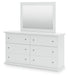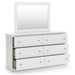 | Details | B139B41: Includes panel headboard/footboard and rails, Made with engineered wood (MDF/particleboard/plywood) and decorative laminate for the right balance of affordability and durability, Replicated solid white paint, Decorative laminate replicates natural or man-made material surfaces with consistent color, pattern and texture, Foundation/box spring required, sold separately, Mattress available, sold separately, Assembly required, B139B40: Includes dresser and mirror, Made of engineered wood (MDF/particleboard), Knobs with pewter-tone finish, Scalloped moulding, 6 smooth-operating drawers, Includes tipover restraint device, Mirror attaches to back of dresser; can also be mounted on wall horizontally or vertically, Safety is a top priority, clothing storage units are designed to meet the most current standard for stability, ASTM F 2057 (ASTM International), Drawers extend out to accommodate maximum access to drawer interior while maintaining safety, | |
