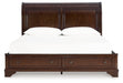 | Details | Includes king sleigh headboard, rails and storage footboard with roll slats, Made with hardwood solids, select hardwood veneer and MDF substrate, Warm brown cherry finish, Dark bronze-tone knobs, 2 smooth-gliding drawers in footboard, Bed does not require additional foundation/box spring; accommodates most zero clearance adjustable bases, Mattress available, sold separately, Assembly required | |
