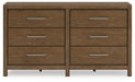 This dresser sits comfortably at the intersection of modern lodge and farmhouse aesthetics. Your warm and welcoming disposition is reflected in the charming architectural elements and light brown glazed finish. Even with its poise, the dresser remains practical. Smooth-gliding drawers tuck away necessities, defining your bedroom with reliable function and style.