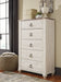 | Details | Made of engineered wood (MDF/particleboard) and decorative laminate, Whitewash replicated worn through paint with authentic touch, Replicated wood grained block pattern with authentic touch, Antiqued brass-tone ring-pull hardware, 5 smooth-gliding drawers, Safety is a top priority, clothing storage units are designed to meet the most current standard for stability, ASTM F 2057 (ASTM International), Drawers extend out to accommodate maximum access to drawer interior while maintaining safety, Assembly required | |