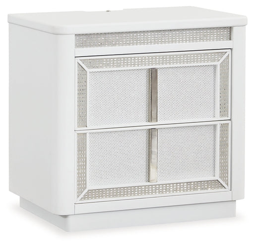 The epitome of fashion-forward design, this nightstand is a beautiful blend of comfort and luxury. Shiny chrome-tone accents, a pearlized finish an...
