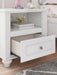 Fit for a princess. This nightstand’s crisp matte white finish pairs with charming ornate beading details and bun feet—perfect for your girly girl. Multicolored LED lighting and built-in USB charging are the crowning touches to make your little one feel like royalty.