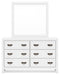 | Details | B427B9: Includes California king panel headboard, footboard, rails and slats, Made with hardwood solids, okoume veneer and MDF substrates, White finish, Foundation/box spring required, sold separately, Mattress available, sold separately, Assembly required, B427B1: Includes dresser and mirror, Made with hardwood solids, okoume veneer and MDF substrates, White finish, 6 drawers with dovetail construction and metal center guides, Hardware with dark finish, Drawer interiors are lined with a wood grain laminate for a clean, finished look, Mirror attaches to back of dresser, B427-92: Made with hardwood solids, okoume veneer and MDF substrates, White finish, 2 drawers with dovetail construction and metal center guides, Hardware with dark finish, Drawer interiors are lined with a clean wood grain laminate for a clean, finished look, | |