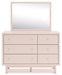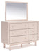 Details B1323-87: Made with durable engineered wood frame covered in a creamy white boucle, Polyester upholstery, ¼" bolts (not included) are needed to attach headboard to your existing bed frame, Minor assembly required, B1323-245: Made with engineered wood (MDF/particleboard/plywood) and decorative laminate for the right balance of affordability and durability, Subtle blush finish over replicated pecan wood grain, Decorative laminate replicates natural or man-made material surfaces with consistent color, pattern and texture, Champagne colored knobs, 5 smooth-gliding drawers, Drawer interiors are lined with a faux linen laminate for a clean, finished look, Safety is a top priority, clothing storage units are designed to meet the most current standard for stability, ASTM F 2057 (ASTM International), Drawers extend out to accommodate maximum access to drawer interior while maintaining safety, Minor assembly required, B1323-91: Made with engineered wood (MDF/particleboard/plywood) and decorative laminate for the right balance of affordability and durability, Subtle blush finish over replicated pecan wood grain, Decorative laminate replicates natural or man-made material surfaces with consistent color, pattern and texture, Champagne colored knobs, 1 smooth-gliding drawer, 1 open shelf, Drawer interiors are lined with a faux linen laminate for a clean, finished look, 2 slim-profile USB charging ports, Power cord included; UL Listed, Minor assembly required, B1323B1: Includes dresser and mirror, Made with engineered wood (MDF/particleboard/plywood) and decorative laminate for the right balance of affordability and durability, Subtle blush finish over replicated pecan wood grain, Decorative laminate replicates natural or man-made material surfaces with consistent color, pattern and texture, Champagne colored knobs, 6 smooth-gliding drawers , Drawer interiors are lined with a faux linen laminate for a clean, finished look, Mirror can be attached to back of dresser or wall mounted horizontally or vertically, Safety is a top priority, clothing storage units are designed to meet the most current standard for stability, ASTM F 2057 (ASTM International) , Drawers extend out to accommodate maximum access to drawer interior while maintaining safety, Minor assembly required,