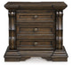 | Details | B947B4: Includes upholstered panel headboard, upholstered panel footboard and panel rails, Made with hardwood solids, oak and ash swirl veneers, MDF substrates and cast resin components, Dark brown finish, Polyester upholstery with button tufting, Foundation/box spring required, sold separately, Mattress available, sold separately, Assembly required, B947B1: Includes dresser and mirror, Made with hardwood solids, oak and ash swirl veneers, MDF substrates and cast resin components, Dark brown finish, 6 smooth-gliding drawers with dovetail construction (top drawer felt lined), Drawer pulls with antiqued goldtone finish, Mirror attaches to back of dresser, B947-93: Made with hardwood solids, oak and ash swirl veneers, MDF substrates and cast resin components, Dark brown finish, 2 smooth-gliding drawers with dovetail construction (top drawer felt lined), Pull-out tray behind bottom drawer, Drawer pulls with antiqued goldtone finish, 110V power supply with dual USB charging ports, Power cord included; UL Listed, | |