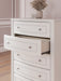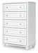 | Details | Made with engineered wood (MDF/particleboard/plywood) and decorative laminate for the right balance of affordability and durability, Matte white finish, Decorative laminate replicates natural or man-made material surfaces with consistent color, pattern and texture, Crystal drawer knobs, 5 smooth-gliding drawers, Drawer interiors are lined with a faux linen laminate for a clean, finished look, Safety is a top priority, clothing storage units are designed to meet the most current standards for stability, ATM F 2057 (ASTM International), Drawers extend out to accommodate maximum access to drawer interior while maintaining safety, Minor assembly required | |