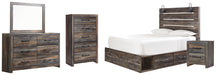 Drystan Queen Panel Bed with 2 Storage Drawers with Mirrored Dresser, Chest and Nightstand