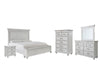 Give your retreat vintage charm with this bedroom set in a beautifully distressed whitewash finish. You'll love the headboard's grand style featuring a picture framed panel. The bench footboard is equally elegant offering extra storage and a convenient seat. Generously scaled moulding, framed drawer fronts and bun feet enhance the character of this bedroom set—evoking the feel of a quaint cottage escape.