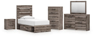 Graystorm Twin Panel Bed with Storage with Mirrored Dresser, Chest and Nightstand
