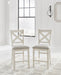 | Details | Made with wood, Antiqued white finish with wood grain texture, Foam cushion with polyester upholstery, Nailhead trim, X-back, Assembly required | |