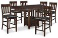 | Details | D596-42: Made of veneers, wood and engineered wood, Separate extension leaf, Table extends by pulling both ends and dropping in leaf, Seats up to 6, Assembly required, Bar stools available, sold separately, D596-124: Made of veneers, wood and engineered wood, Vinyl upholstery, Cushioned seat, Slat back design, | |