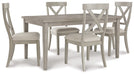 Details Made of engineered wood, Tabletop made of melamine with a replicated barn wood effect, MEGA-TUFF® melamine surfaces are made of easy-clean melamine which is heat-, scratch-, water- and stain-resistant, Dining table with tapered legs and a gray finish, Seats up to 6, Assembly required