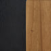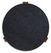 Details Includes coffee table and end table, Made of solid wood legs and hardwood veneer with MDF substrate, Black textured top, Legs with natural wood finish