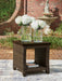 Looking for that special spot to relax and entertain on your deck or patio? Then you'll love this outdoor end table. With beautifully textured resin wicker over a sturdy aluminum frame, it brings so much style and warmth to your outdoor space. And the hand-brushed, wood-look finish means you can spend less time worrying and more time chilling. What a smart and stylish way to create a beautiful, lasting space for everyone to enjoy.