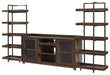 For fans of urban industrial design, this 3-piece entertainment center clearly steals the show. Its blend of acacia veneer and wood is beautified with an oiled walnut-tone finish for a highly contemporary aesthetic with grainy, earthy character. Infusion of dark bronze-tone metal takes the cool character to another level. While the look might be richly substantial, open-concept piers and glass-front cabinets lighten the mood. And for your added viewing pleasure, this entertainment center is compatible with our electric fireplace inserts (sold separately).
