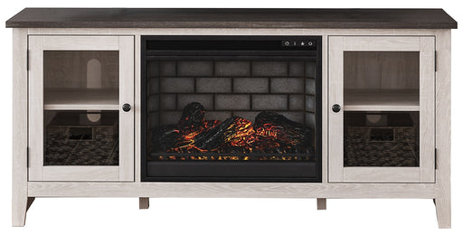 Consumer's ChoiceExpress your farmhouse style with this TV stand with fireplace insert. Its wispy white finish over replicated oak wood grain is a delightful change...