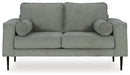 Simple comfort meets modern function in this loveseat. An apt addition to apartments and other small spaces, the slim-profiled piece welcomes you with its cozy character. A subtle chevron pattern on the cushions refresh the classic neutral hue, elevating the look while still suiting a variety of styles. Black accent legs add a dash of contemporary flair.
