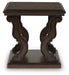 Lavish, luxurious living is within reach when you add this end table to your living room. Recalling a classic sense of refinement, its elegant scrolled legs make a beautifully bold statement. Ornate details on the apron add an air of opulence to the regal dark brown finish. The look is timeless. The feel? Right at home.