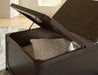 Details Made with hardwood solids, oak veneer and MDF substrate, Dark brown wood-tone finish with rich dark grain contrast, 2-sided hinged top opens to reveal storage, Assembly required