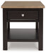 | Details | Made with acacia solids, acacia veneer and MDF substrate, Tabletop with light wood-tone finish, Dark chocolate brown body, 1 smooth-gliding drawer, Open lower shelf | |