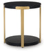 | Details | Includes coffee table and 2 end tables, Made with melamine laminate top and MDF substrates, Textural black wood grain pattern, Metal legs with durable goldtone powder coat finish, Lower display shelf, Coffee table with casters for easy mobility | |