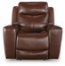 Prepare to be moved. This power recliner combines sleek modern design with all the soothing features you've been dreaming of. Wrapped in mahogany leather and faux leather for affordable luxury, this highly contemporary piece with cozy scoop seating suits your relaxed vibe. Infinite reclining and headrest positions are yours at the touch of a button. It's the perfect choice for anyone who wants their comfort with a side of style.