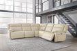 Details Includes 5 pieces: left-arm facing power recliner, armless chair, power armless recliner, wedge and right-arm facing power recliner, "Left-arm" and "right-arm" describe the position of the arm when you face the piece, One-touch power control with adjustable positions, Easy View™ adjustable headrest and zero-draw USB port, Zero-draw technology only consumes power when the USB receptacle is in use, Easy View™ adjustable headrest puts your head and neck in optimum position for reading or watching TV even if you're fully reclined, Zero-gravity mechanism allows optimum reclining comfort with infinite reclining positions at the touch of a button, Corner-blocked frame with metal reinforced seat, Attached cushions; high-quality foam cushions wrapped in poly fiber, 100% top grain leather covers inside areas such as the back, seat and arm cushions; skillfully matched faux leather covers the remaining areas , Due to its natural origin, real leather can show individual characteristics such as healed scars, growth marks, grain variation and shade variation, Natural variations make each hide unique and do not detract from the wearing qualities of leather, Armrests with pop-out storage and cup holder, Power cord included; UL Listed