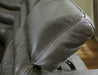 For those seeking to curate a living room retreat that offers superior comfort and a contemporary aesthetic, this sleekly designed power reclining sectional will become your favorite source of at-home serenity. Rest on expertly matched leather and faux leather upholstery, and use the one-touch power control to recline and adjust the headrests with ease. As you recharge after a long day, your devices can too with USB charging. This sectional is visually enticing in a luxe dark gray, with slope track arms and stitched detailing on the back to enhance its modern appeal.