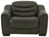 For those seeking to curate a living room retreat with superior comfort and a contemporary aesthetic, this sleekly designed power recliner will become your favorite source of at-home serenity. Rest on expertly matched leather and faux leather upholstery, and use the one-touch power control to recline and adjust the headrest with ease. As you recharge after a long day, your devices can too with USB charging. This recliner is visually enticing in a luxe dark gray, with slope track arms and stitched detailing on the back to enhance its modern appeal.