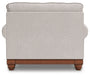 Fresh yet classic. That’s the beauty of this oversized chair. Dressy and also soft to the touch, its organic neutral-toned upholstery is sure to bring a transitional farmhouse aesthetic to your living space. An accent pillow in windowpane plaid infuses a cozy and inviting farmhouse sensibility, while a full wraparound base and decorative turned legs complete the chair's timeless look. It's the perfect place to curl up after a long day.
