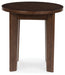 It's hard to say what's most striking about this round end table. Is it the rich warm brown finish or the thick tapered legs? Either way, the table's clean, contemporary aesthetic is perfect for your casual lifestyle. It would look perfect right next to your couch or accent chair.