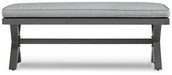 Add a distinguished touch of gray to your outdoor living space with this bench. It's made with an aluminum frame with a wood-look finish for a relaxed feel that provides seasons of enjoyment. Rest assured, the thick seat cushion is wrapped in Nuvella® high-performance fabric that’s fade-resistant, stain-resistant and a breeze to clean.