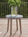 High style, meet sleek durability. This outdoor end table combines a contemporary silhouette with must-have longevity, so you can bring your eye for design alfresco. It impresses with the refined appeal of wood-look aluminum and a stone-look top, expertly completing your outdoor seating area.