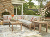 An effortlessly elegant choice in outdoor furniture, this sectional marries sturdiness and style in such a delightful way. Its eucalyptus wood frame, with tapered touches and slat styling, is treated to a 5-step finishing process for that much more weather protection. Sumptuously soft yet remarkably durable, the included cushions are wrapped in high-performing, low-maintenance Nuvella® fabric that you’re sure to love.
