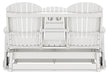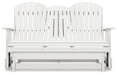 Drift away from everyday worries and into outdoor bliss with this glider loveseat. Dressed in a crisp white, the Adirondack-inspired design has a classic feel. It weathers sunny summer days and cozy winter nights with durable MEGA-TUFF® HDPE material. A drop-down console with integrated cup holders keeps refreshments and snacks within easy reach. With the console snapped into the back, this loveseat has even more room for enjoying lazy days in the shade.