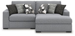 Details Includes 2 modular pieces: left-arm facing corner chaise and right-arm facing corner chair, "Left-arm" and "right-arm" describe the position of the arm when you face the piece, Modular pieces can float anywhere; sides are finished (with no connectors), Corner-blocked frame, Reversible seat and back cushions; high-resiliency foam cushions wrapped in poly fiber, Accent pillows included; pillows with soft polyfill, Polyester upholstery, Next-Gen Nuvella is a performance fabric that is soft, easy to clean, stain-resistant and durable, Easy-to-remove zippered covers for machine washing, Clean fabric with mild soap and water, let air dry; for stubborn stains, use a solution of 4 oz. bleach to 28 oz. water, Low-profile accent legs with faux wood finish, Platform foundation system resists sagging 3x better than spring system after 20,000 testing cycles by providing more even support, Smooth platform foundation maintains tight, wrinkle-free look without dips or sags that can occur over time with sinuous spring foundations