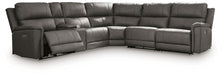 Details Includes 6 pieces: left-arm facing power recliner, armless chair, power armless recliner, console with storage, wedge and right-arm facing power recliner, One-touch power control with adjustable positions, Easy View™ adjustable headrest and zero-draw USB-A and USB-C ports, Zero-draw technology only consumes power when the USB receptacle is in use, Zero-gravity mechanism allows optimum reclining comfort with infinite reclining positions at the touch of a button, Corner-blocked frame with metal reinforced seat; attached back and seat cushions, High-quality foam cushions wrapped in poly fiber, 100% top grain leather covers inside areas such as the back, seat and arm cushions; skillfully matched faux leather covers the remaining areas, Due to its natural origin, real leather can show individual characteristics such as healed scars, growth marks, grain variation and shade variation, Natural variations make each hide unique and do not detract from the wearing qualities of leather, Console with 2 cup holders and hidden storage, Zero wall recliner design requires minimal space between wall and chair back, Zero gap mechanism maintains consistent lower back and lumbar support throughout every stage of reclining for the ultimate relaxation experience, Power cord included; UL Listed