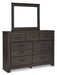 | Details | Includes dresser and mirror, Made with engineered wood and decorative laminate, Dark charcoal finish over replicated oak grain, 7 smooth-gliding drawers; 3 drawer sizes, Linear pulls with dark pewter-tone finish, Mirror attaches to back of dresser, Safety is a top priority, clothing storage units are designed to meet the most current standard for stability, ASTM F 2057 (ASTM International), Drawers extend out to accommodate maximum access to drawer interior while maintaining safety , Assembly required | |