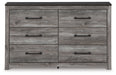 Alluring smoky gray hues create an ambiance that just feels right. This 6-drawer dresser has a charming wood-like appeal enriched by a two-tone, textured look. Light neutral shades contrasted by a dark charcoal finish bring a refined yet relaxed feel to contemporary decor and a sense of serenity to your space.