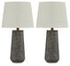 | Details | Set of 2, Made of metal and wood with modified drum hardback fabric shade, Antiqued white finish, 3-way switch, 1 E26 socket, type A bulb (not included); 100 watts max or LED equivalent; UL Listed, Assembly required | |