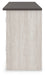 Details Made of engineered wood and decorative laminate, Antique white finish, Top with replicated gray wood grain, Pair of glass inset doors, Adjustable center shelf; 2 side shelves, Cutouts for write management, Compatible with our W100-02 and W100-101 fireplace inserts (sold separately), Assembly required