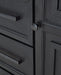 Details Made with hardwood solids, select oak veneers and engineered wood, Two-tone finish (brushed black and dusty grayish brown wood tone), Sleek drawer pulls with black finish, 5 soft-close, smooth-gliding drawers with fully finished interiors and dovetail construction (top drawers felt lined), 3 pull-out trays (felt lined) and 2 adjustable shelves behind door